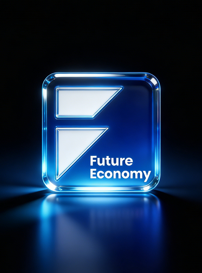 1 ,Logo:把“Future Economy”压缩成一个能长期使用的符号。整个标志最核心的处理,是把 F 做成了品牌识别母体。这一步非常关键。因为“未来经济”这个名字本身已经足够概念化,如果图形再复杂,品牌会变得非常难记。所以我们没有去做复杂图腾,而是反过来把它压到最简单:让一个结构化的 F,成为未来经济最直接的识别入口。这个 F 的好处在于,它不是单纯的首字母,而是天然带有几层含义: